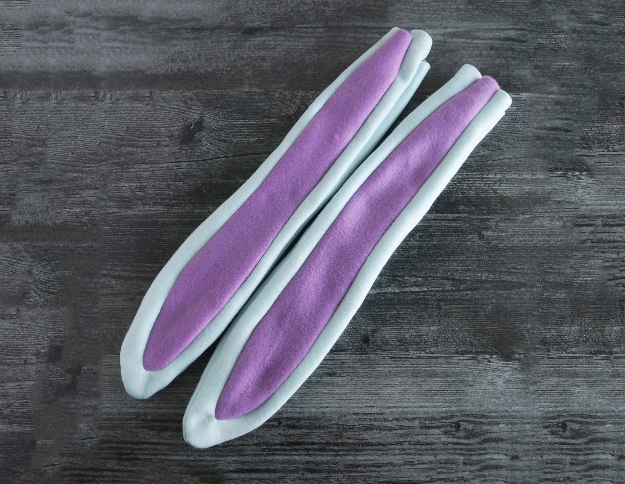 These Bunny ears are made from fleece and interfacing. This listing is for just ears, hat not included. Ears will be left open at the end and not "finished".
