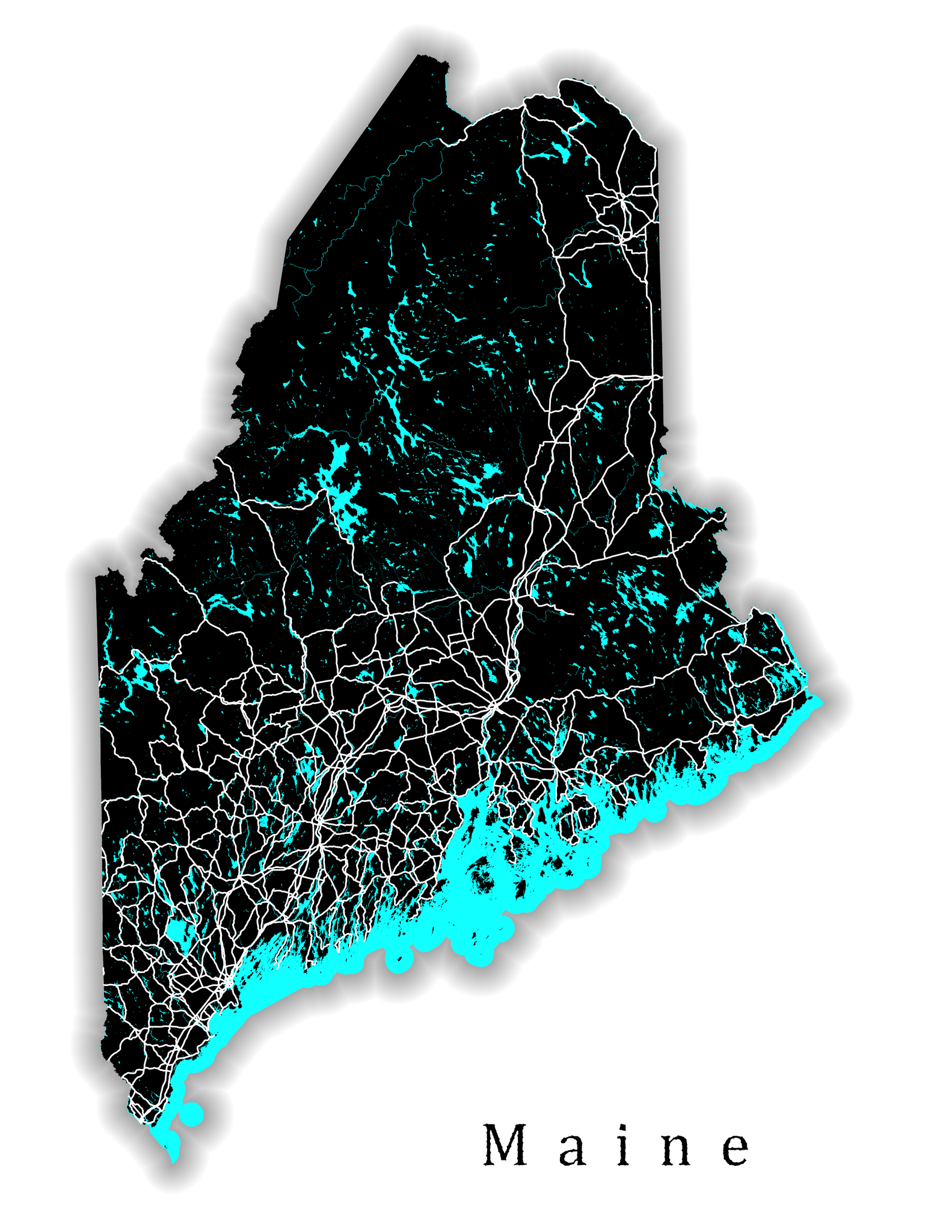 Maine State Map. Includes major roads and area water.